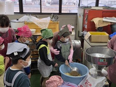 令和8年2月5日(木)3年生がJA女性部の皆様のご指導のもと、豆腐作りを体験しました。大豆からできる過程を学び、にがりで固まる様子を見学しました。できたての豆腐を味わい、食の大切さや地域の方々への感謝の気持ちを深めることができました。
